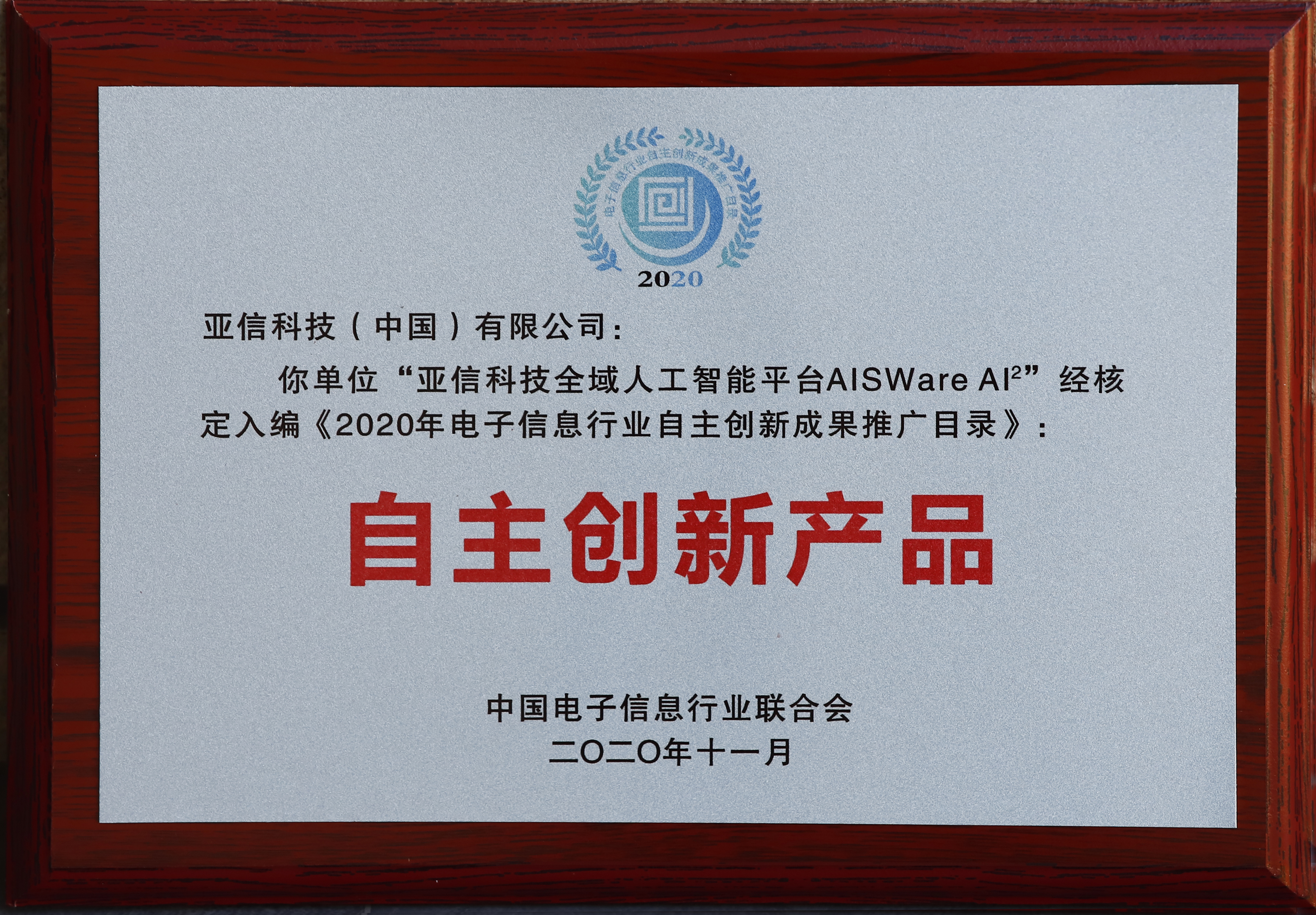 2020年11月 304am永利集团全域人工智能平台AISWare AI²荣获“自主创新产品”